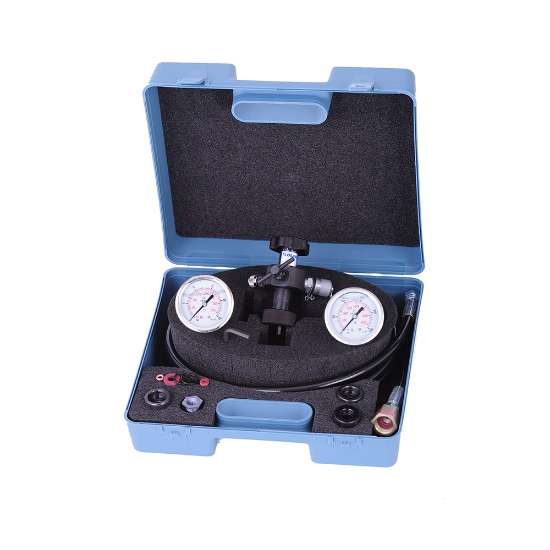 - Manometer-Kits mit verschiedenen Größen: 63mm mit Glycerinfüllung und rückseitigem G 1/4'' Anschluss. Ausgerüstet mit einem Adapter für Minimess-Anschluss. Messskala von 0-10, 0-60, 0-100, 0-400, mit Genauigkeitsklasse 1,6%.